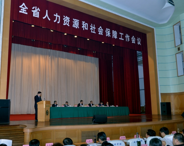 韩金峰厅长在讲话中充分肯定了2014年全省人力资源和社会保障工作取得的显著成绩,结合经济发展的新常态对各项事业提出的新要求,深入分析了当前全省人 社工作面临的新形势和新任务,安排部署了今年的各项工作任务,强调重点做好以下七项工作:一是更加注重精准发力,全力确保就业稳定;二是更加注重公平可持 续,筑牢社会保障安全网;三是更加注重聚焦“转调创”,全面加强人才队伍建设;四是更加注重激发干事创业活力,深化干部人事制度改革;五是更加注重合理有 序,稳慎推进收入分配制度改革;六是更加注重标本兼治,大力构建和谐劳动关系。