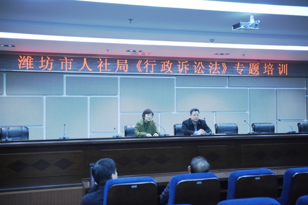 为深入贯彻依法治国方略,切实提高依法行政水平,12月18日,市人社局举办了全系统法律知识培训,特邀山东泰琪律师事务所高建敏律师专题讲解《行政诉讼法》,局机关全体人员、局属各单位副科级以上干部共计150余人参加了培训。
