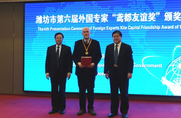 近日,我市举行第六届外国专家“鸢都友谊奖”颁奖仪式,为10名在潍工作的外国专家颁发“鸢都友谊奖”。潍坊市副市长、市政府党组成员刘建国;市政协党组成员,市人社局党委书记、局长李静波出席仪式并为获奖专家颁奖。