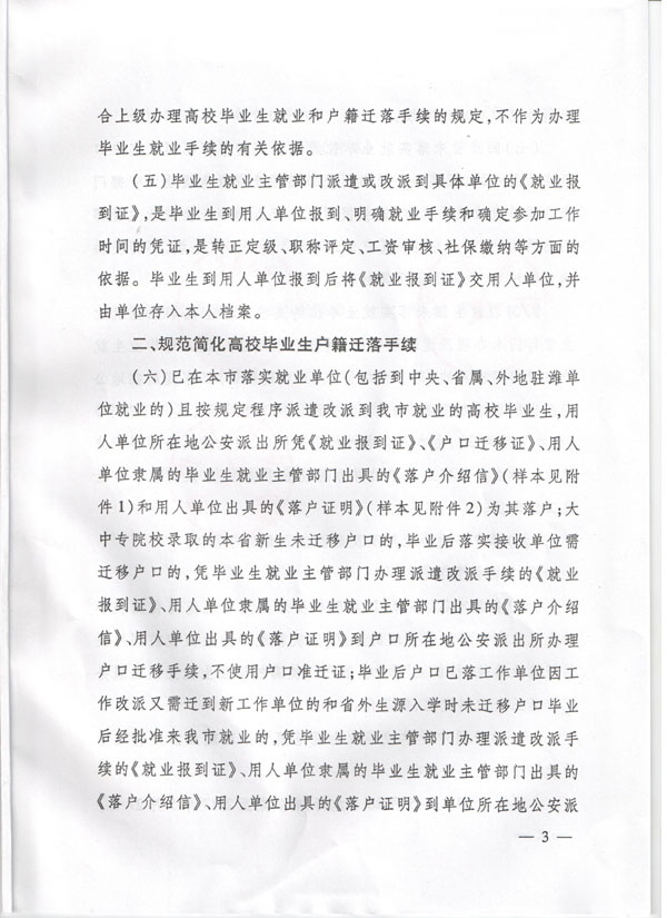 关于进一步规范完善和简化高校毕业生就业和户籍等手续的通知